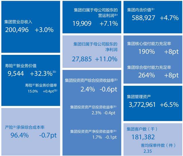 其中,寿险业务新业务价值可比口径实现较快增长,营运利润保持稳健增长;财产险业务承保盈利水平进一步提升,保费收入持续增长;同时坚持基于保险负债特性的战略资产配置,投资业绩表现良。