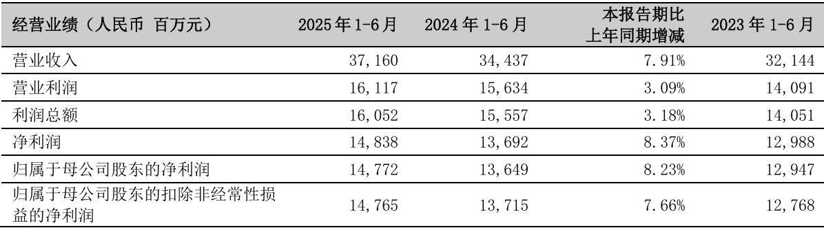 宁波银行(002142.SZ)公布2025半年度报告。2025年上半年,公司实现营业收入371.60亿元,同比增长7.91%;实现归属于母公司股东的净利润147.72亿元,同比增长8.23%;实现非利息收入114.34亿元,在营业收入中占比为30.77%。